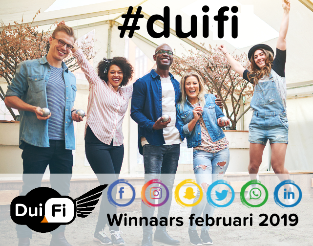Iedere eerste maandag van de maand kun jij 1 van de de 10 persoonlijke Dui-Fi's winnen! Met een Persoonlijke Dui-Fi heb jij een duif die altijd bij jou in de buurt blijft, waar je ook heen gaat. Nooit meer zoeken naar duiven en niemand anders dan jijzelf die op jouw Dui-Fi hotspot kan inloggen. Super-de-luxe snelheden dus!